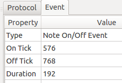 The event view is the most important part of the editor. It visualizes the events in the loaded Midi file. Moreover, most editing can be done in this window.