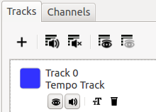 Similar to the track editor, a list of all channels is provided in the channel editor. Channels can be hidden or muted (by clicking